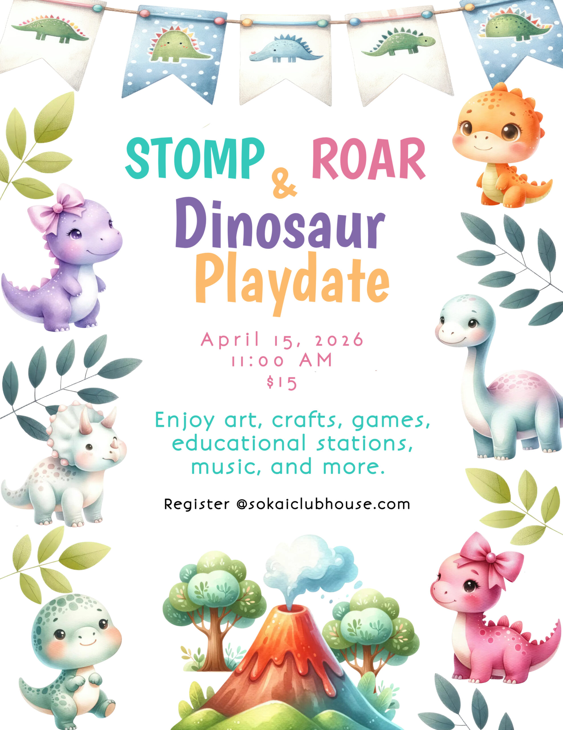 During this fun Dinosaur themed playdate you will enjoy music time, art/crafts, educational stations, games, and more.